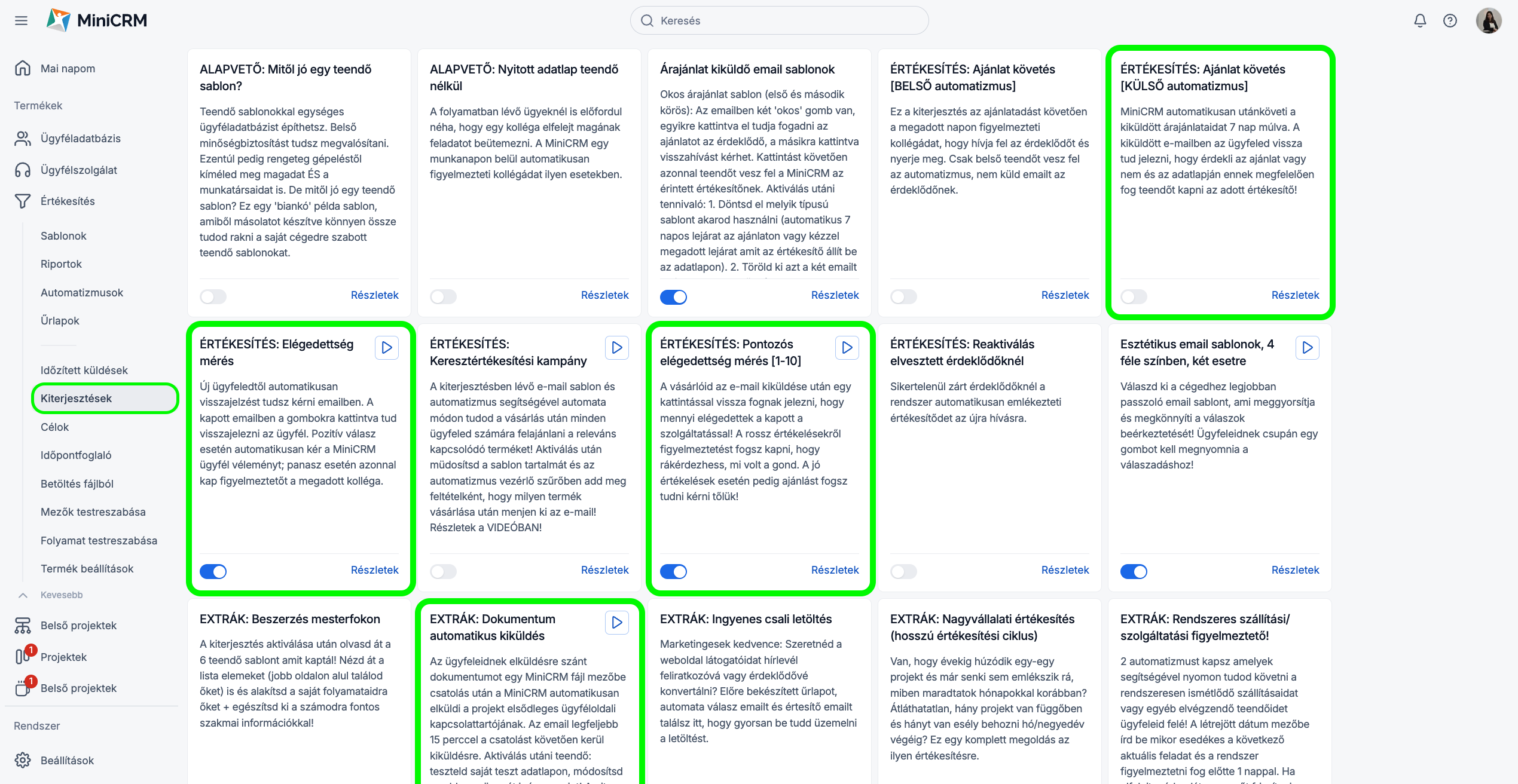 Ezek közül számos megoldást megtalálsz kulcsrakész állapotban a Kiterjesztések menüpontban.